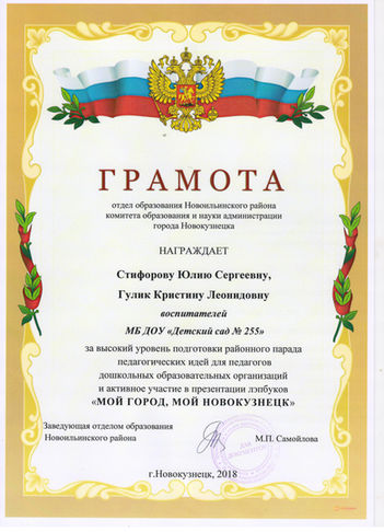Работаю воспитателем в муниципальном бюджетном дошкольном образовательном учреждении "Детский сад №255" города Новокузнецка, в группе коррекционной направленности.